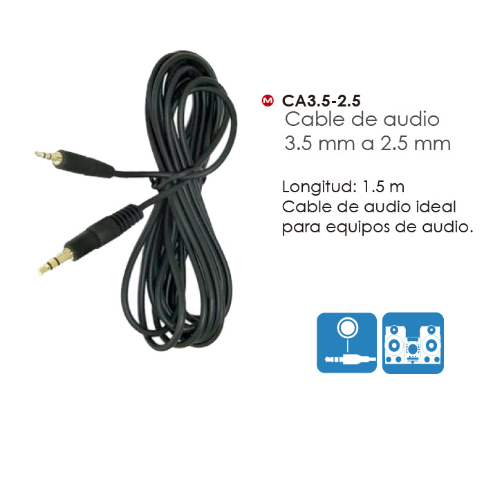 Cable  de 3.5 mm a 2.5 mm, ideal para equipos de audio.